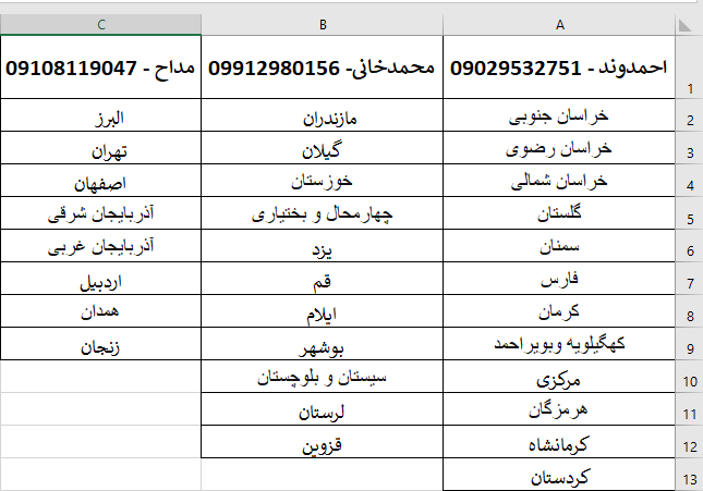 طبق تقسیم بندی انجام شده بر اساس استانها، از این پس جهت پیگیری امور و هماهنگیهای لازم، با نماینده مشخص شده استان خود در روبیکا در ارتباط باشید.